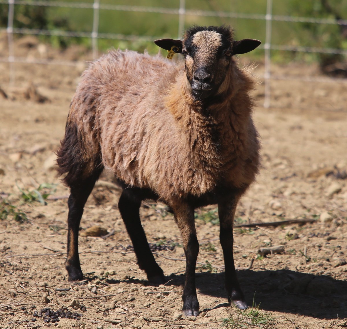 Caractéristiques : elle se distingue par sa couleur rouge des parties non lainées et présente parfois des taches blanches, en particulier des listes en tête. L’agneau naît souvent couvert d’un poil roux de couleur intense puis il mue vers 3 mois pour adopter une toison bise très tassée. La toison est d’une bonne finesse. La race est dépourvue de cornes.