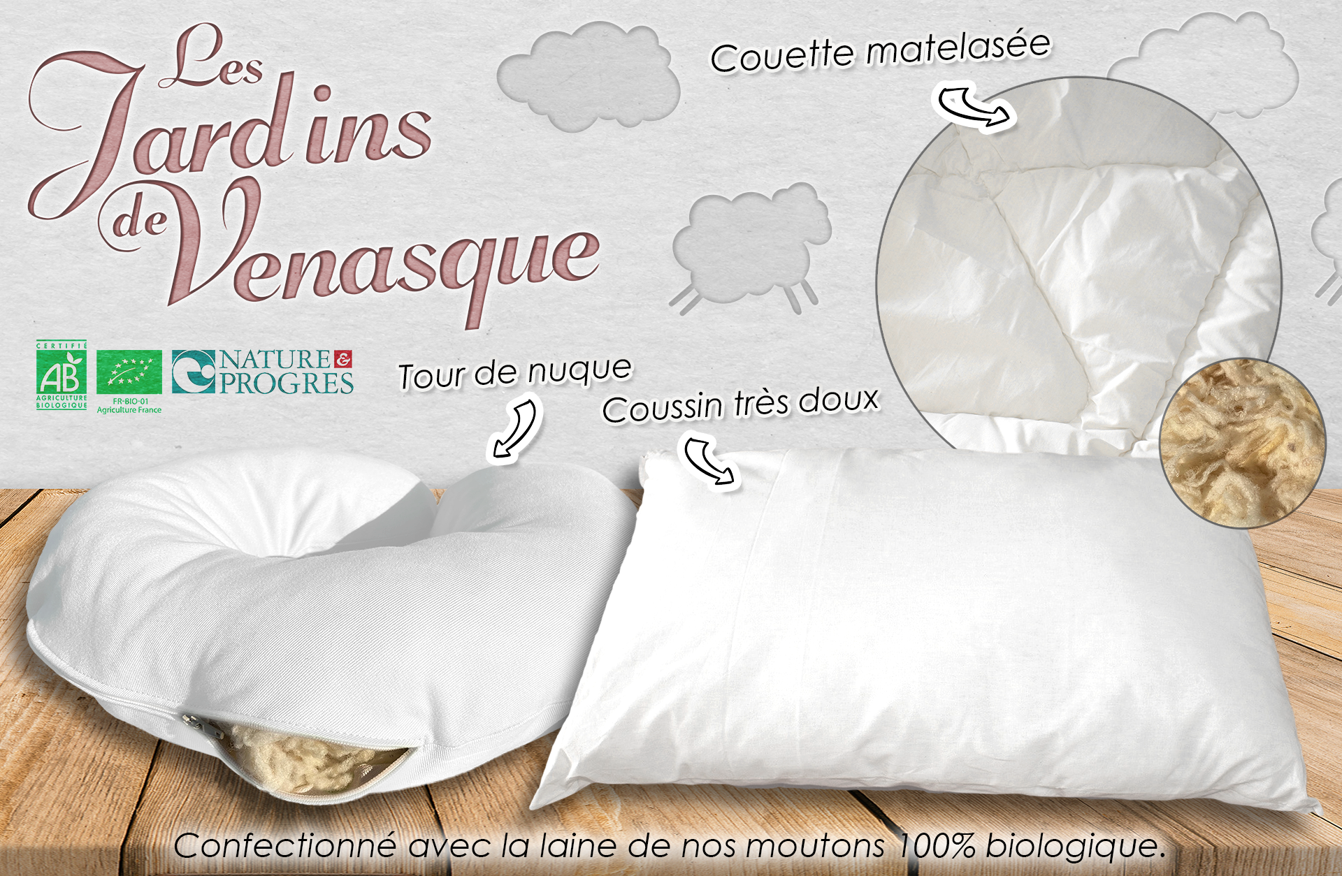« Souple et légère…une pure laine vierge non traitée garantie, pour un doux et sain sommeil »